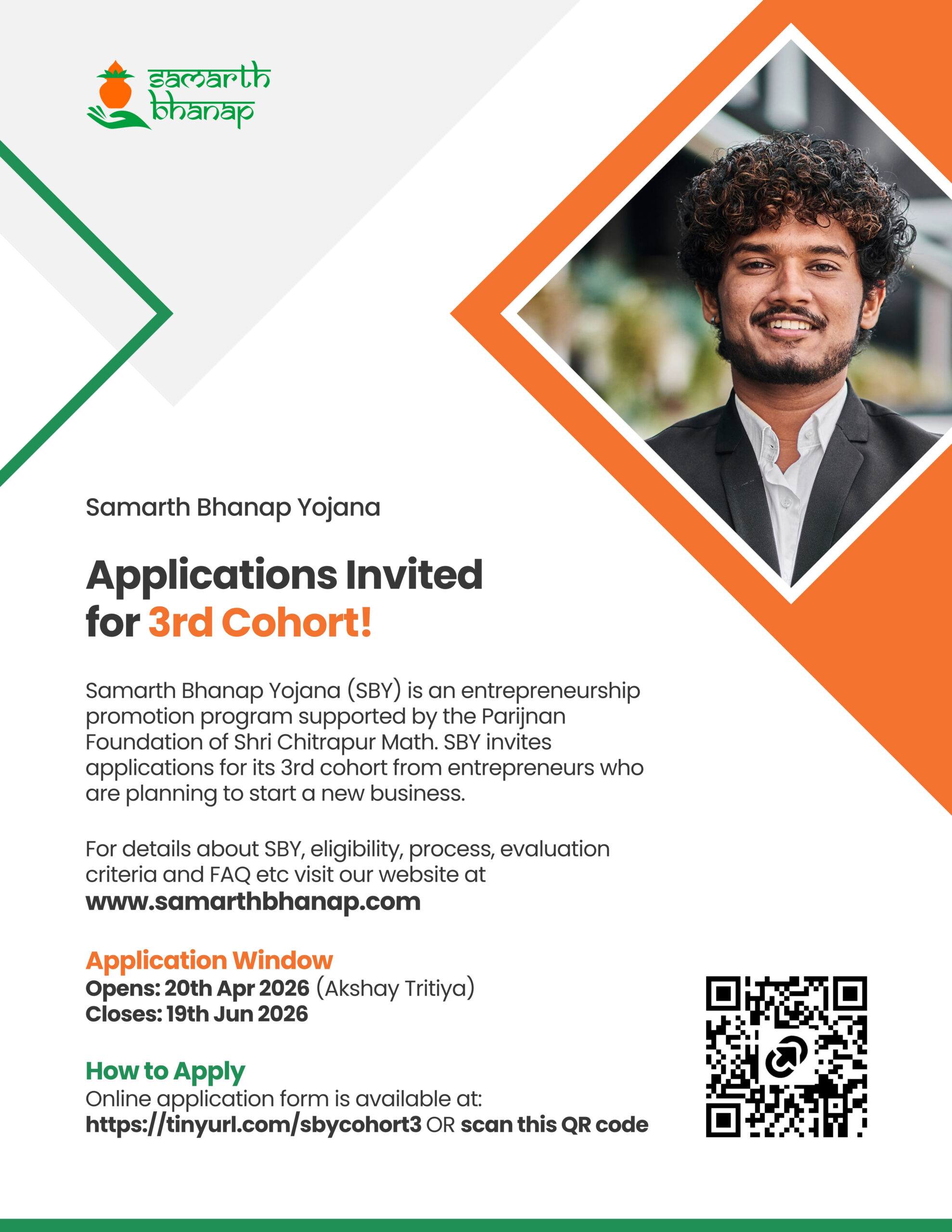 Applications will be invited in cohorts (groups) at periodic intervals (typically twice a year – Vijaya Dashami and Akshay Tritiya). The exact dates of application window will be announced on the SBY website (www.samarthbhanap.com) and through the social media resources of Shri Chitrapur Math, KSA, Yuvadhara, etc.